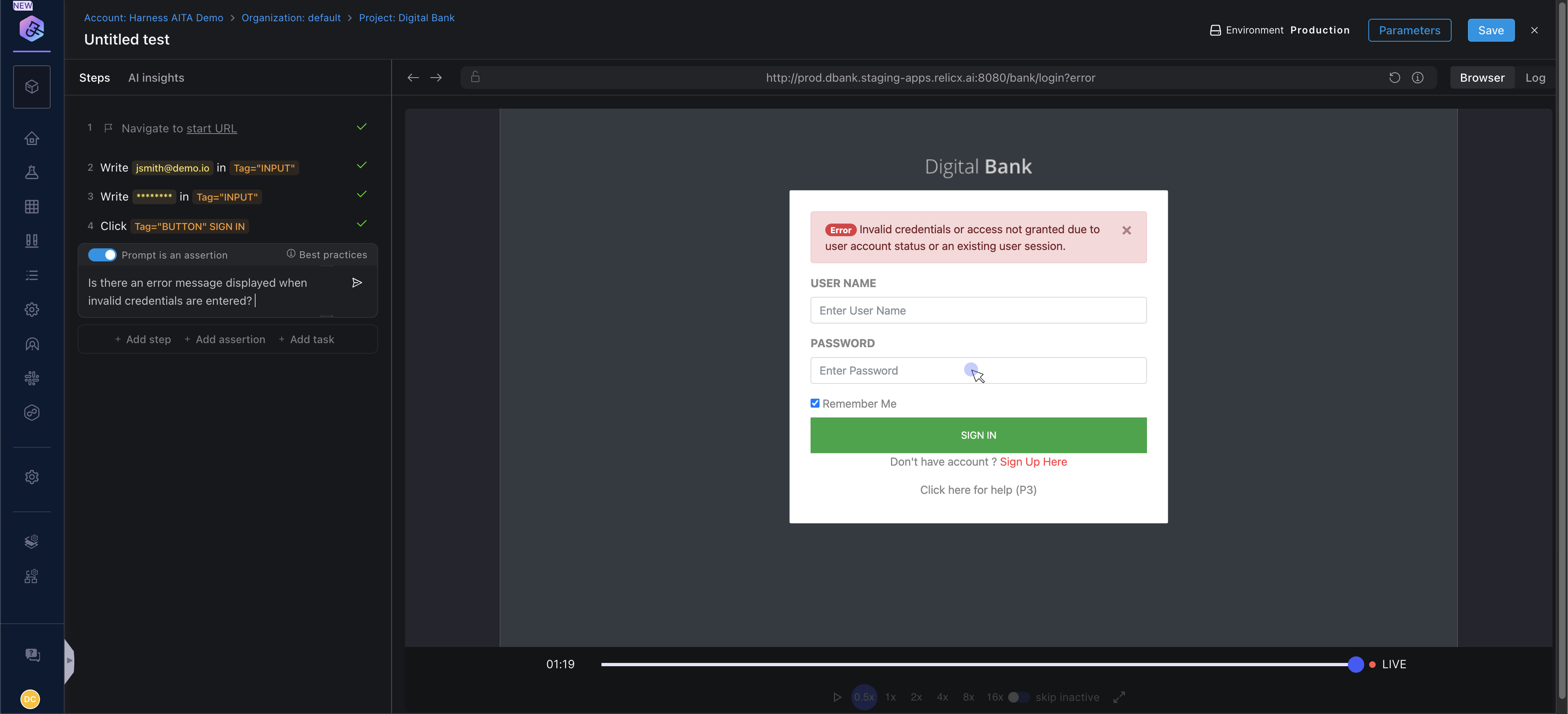 Here is a quick demonstration of the Harness AI Assertion