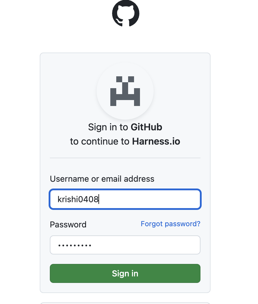 - Sign in to your Github account and authorize Harness.io.