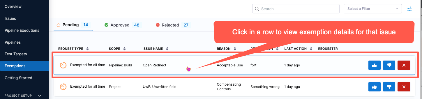 - Dedicated Security Exemptions Section: Ability to grant and manage security exemptions by SecOps owners on identified vulnerabilities or issues during security testing. Exemptions can also be made in the STO Pipeline against specific issues.